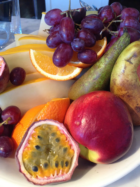 Hotellin aamiainen olikin aivan taivaallinen… Rahkaa, myslia, hedelmia ja cappucinoa… muuta en jaksanut, vaikka poydan antimet kylla kovasti houkuttelivatkin! Nailla jaksaa kavella koko paivan! πŸ™‚ Kivaa sunnuntaita!