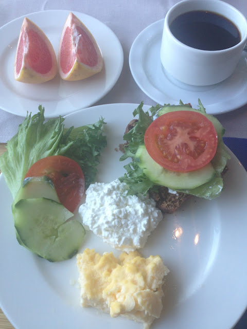 Laivalla soimme jo ensimmaisen aamiaisen seitseman aikaan Maximessa! Buffet oli oikein kattava, ja terveellisiakin vaihtoehtoja loytyi paljon! Ma en ole koskaan ollut pekonien ja nakkien ystava, mutta munakas maistui ihanan tuoreen leivan ja kasvisten kanssa!