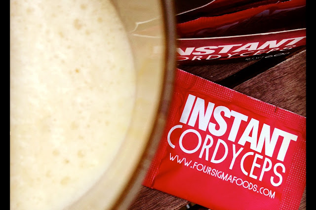 | 1/2 Banaani, vetta ja Instant Cordyceps. Energiaa lenkille. |