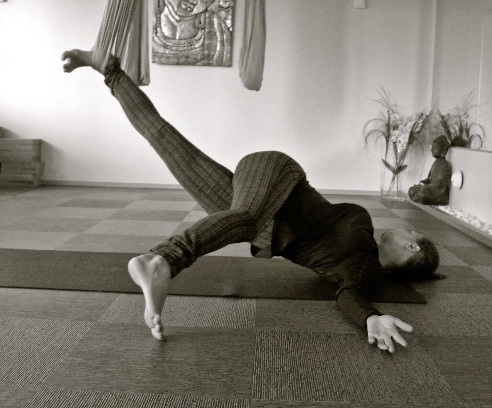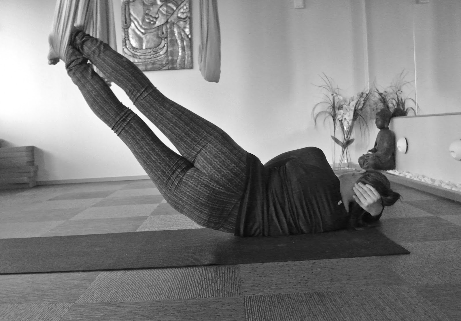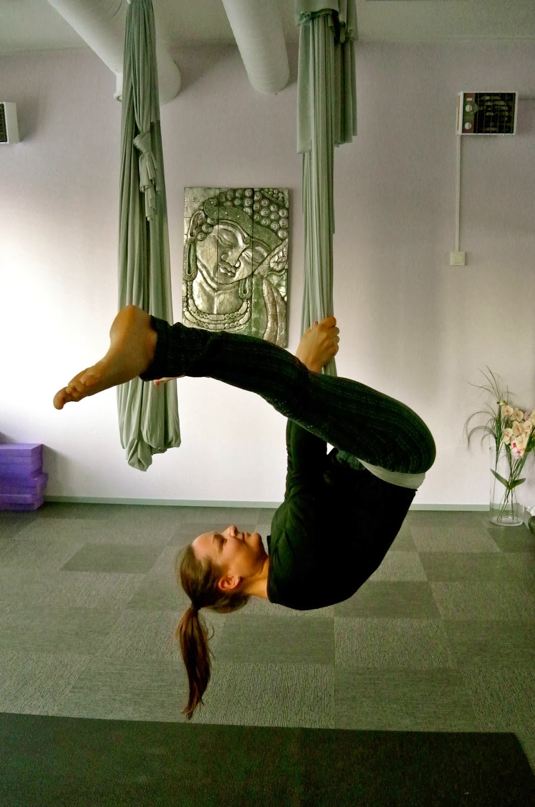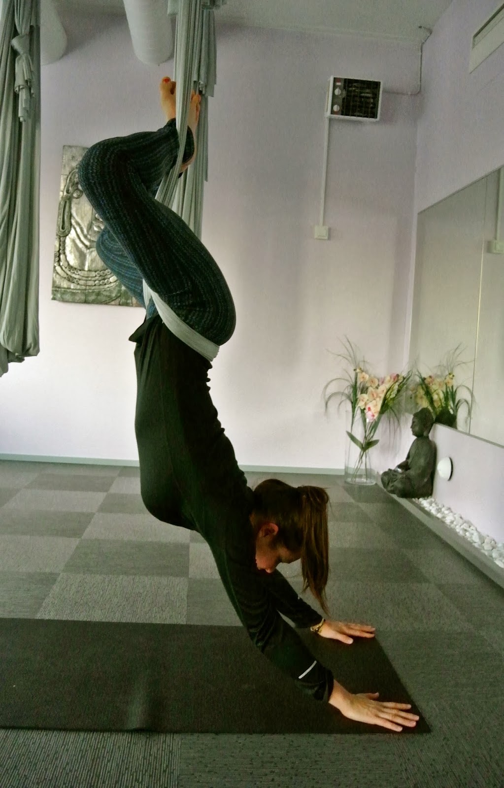 Tällä hetkellä olen hurahtanut ihan täysin air joogaan. Asanoissa päästään liinan avulla vielä niin paljon syvemmälle venytykseen. Ihan mieletön olo tunnin jälkeen ja Katja Yoga Nordicilta on vain niin loistava ope 🙂