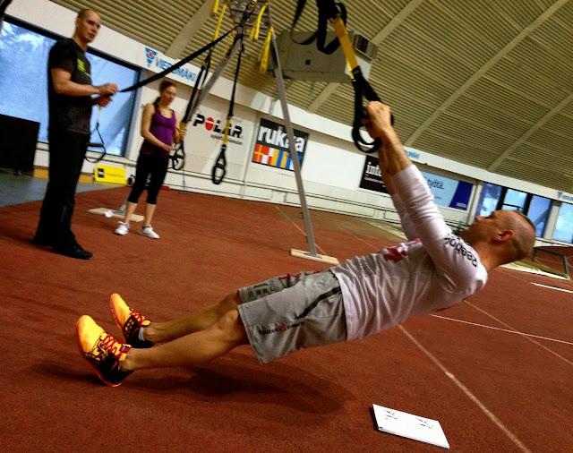 Viikonloppu vierähti nopeasti Vierumäellä TRX-koulutuksessa. Tehokasta treeniä, mutta harmillisesti flunssa iski juuri ennen viikonloppua, eikä sunnuntaina lähtenyt enää ääntä juuri ollenkaan. No, ei se mitään, paljon taas uutta tarttui mukaan ja TRX naruja tulen varmasti käyttämään paljon niin omissa kuin asiakkaidenkin treeneissä. Näillä saa tehtyä todella monipuolisen kokovartalotreenin oman kehonpainolla. TRX naruja on helppo käyttää niin kotona kuin ulkonakin, ja helppo ottaa myös vaikka matkalle mukaan! Paljon kuva-ja videomateriaalia viikonlopulta, eli postauksia varmasti tulossa myös jatkossa. Kiitokset vielä Hannalle mukavasta seurasta ja videosta 🙂