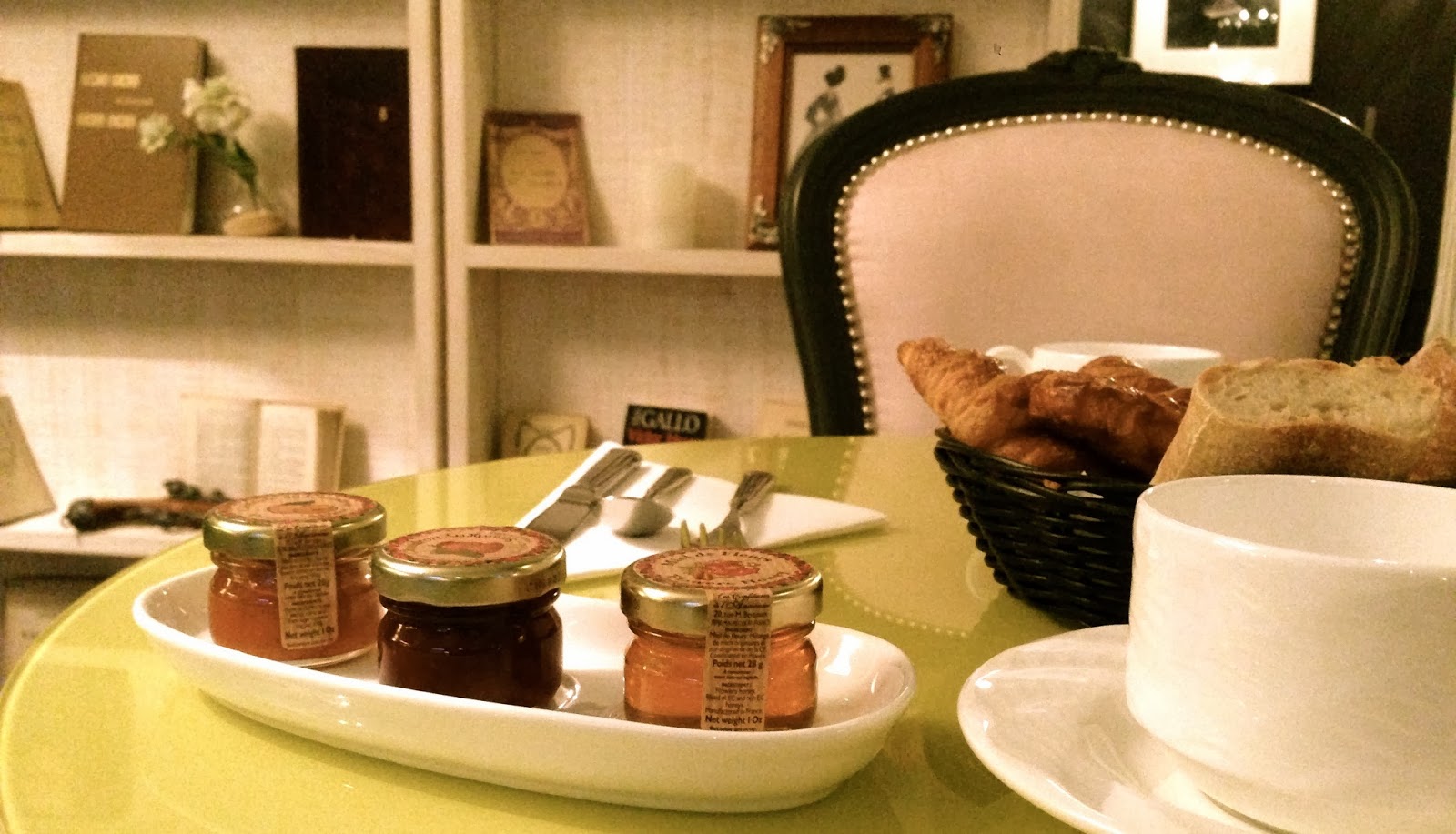 Breakfast French style! My plate was filled with lots of fruits and natural yogurt. Even if I love breakfast, I can’t eat that much so early- especially if I am exercising after. Croissants has never been my cup of tee, but ancient baguette with apricot jam… Mmmmmm. And the decoration in this hotel is so beautiful- with all small details included.