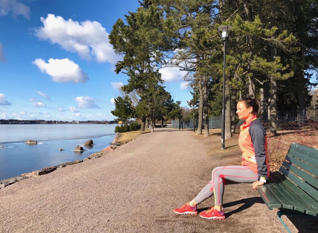 Keväinen aurinko houkuttelee ulos. Kaipaan raitista ilmaa päivittäin, satoi tai paistoi. Talvitreenivaatteet ovat pikku hiljaa vaihtuneet kevyempiin, ja etenkin värikkäisiin sellaisiin. Treenivaatteeni eivät tosin muutenkaan ole kovinkaan synkkiä, mutta eilen tuntui kuin olisin huutomerkkinä kävellyt pitkin katuja 🙂