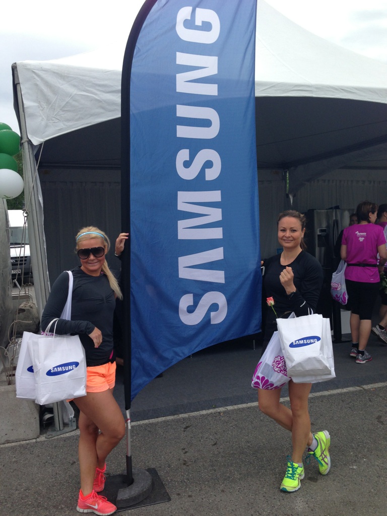 Sunny morning turned to a windy and cloudy day, but it didn’t stop women to run! More than 19 000 women ran 10K today in a special race “Naisten Kymppi” just for women. I was invited by Samsung and it was such a good fun. I was running it with my friend Tanja, and I was motivating her to run her PB- and she did it! I am so happy for her πŸ™‚