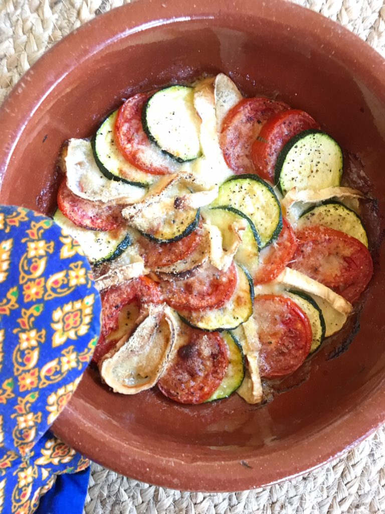 Kesän suosikkiruuaksi on noussut, kunnia inspiraatiosta kummitädilleni, tomaatti-kesäkurpitsa-vuohenjuustovuoka. Tyttöjen kanssa teimme tätä Espanjan reissulla moneen otteeseen. Helppo, nopea ja herkullinen, joka maistuu aivan sellaisenaan tai esimerkiksi kalan tai lihan lisukkeena.