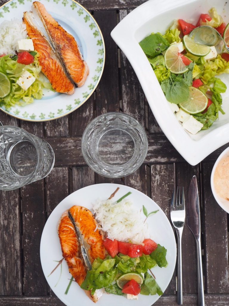 Raikas vesimeloni/fetasalaatti & lohta <3