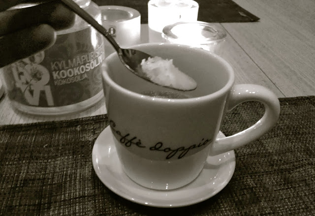 Teelusikallinen kookosöljyä tuo kahviin kivaa makua 🙂