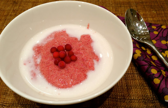 This yummy porridge we had couple of nights ago. “Vispipuuro” is usually made with lingonberries, but can be actually made with cranberries or even with strawberries. My favorite one is the traditional one: with lingonberries.