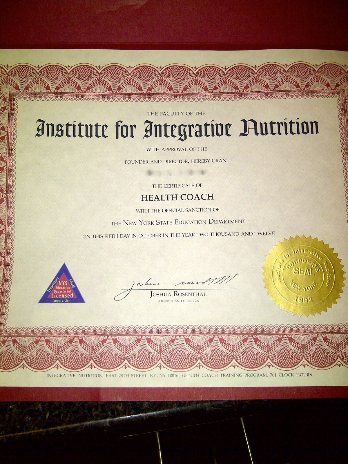 … My Health Coach certificate from Institute for Integrative Nutrition! It’s time to celebrate!