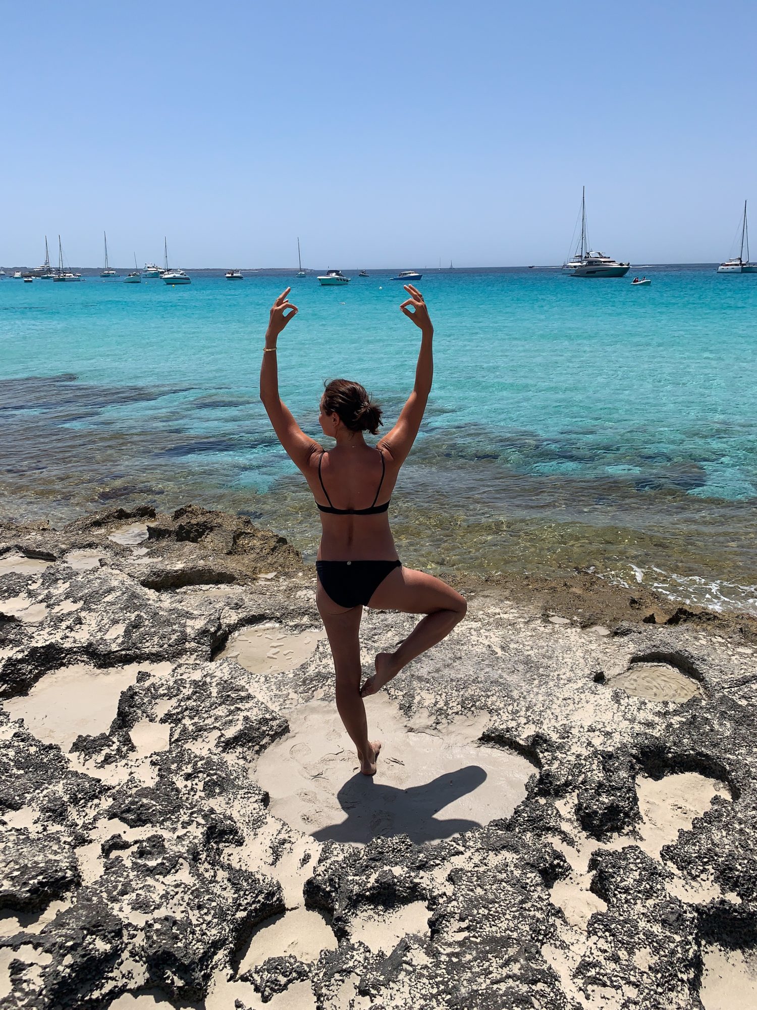 Formenteralla joogasimme kaksi kertaa päivässä, aamukävelyn jälkeen ja illalla ennen dinneriä. Yin jooga sopi täydellisesti teemaan, rentoutumiseen. Osallistuin itsekin tunneille ja ilokseni tunneilla keskityttiin paljon lonkkien avauksiin. Edellisviikkojen kovemmat sauvarinnetreenit ja juoksulenkit tuntuivat kehossa. Mitä enemmän teen kyseisiä treenejä, sitä enemmän minun pitäisi keskittyä kehonhuoltoon. Mutta, mutta… niinhän se menee, kun fokusoituu yhteen juttuun jää huomaamatta toinen asia vähemmälle.