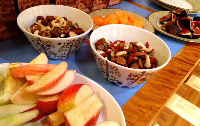 Saunomisen jälkeen maistuivat herkulliset välipalat “tietovisan” lomassa- palkintona PT-tapaaminen 🙂 Tosi kivasti saimme keskustelua aikaiseksi superfoodeista, lisäravinteista ja ruokavaliosta yleensä. Samalla surauttelin Vitamixillä sekä viher-että marjasmootheja. Ilta olisi voinut jatkua pidempäänkin.