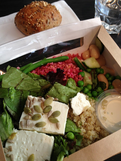 Viela jai aikaa pika lounastaa sis. Delissa ennen lasten koulusta hakemista. Taidan olla vahan kaavoihin kangistunut, kun aina valitsen saman salaatin. Tama linssi/fetasalaatti on vain niin hyvaa π