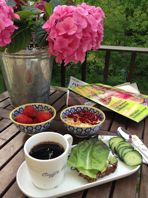 Rainy and bad weather today? No… enjoying my sunday breakfast at the balcony. Friday I finally bought some finnish strawberries, 3,99e a box. Last week exactly the same box was 6,99e! A bit too expensive…