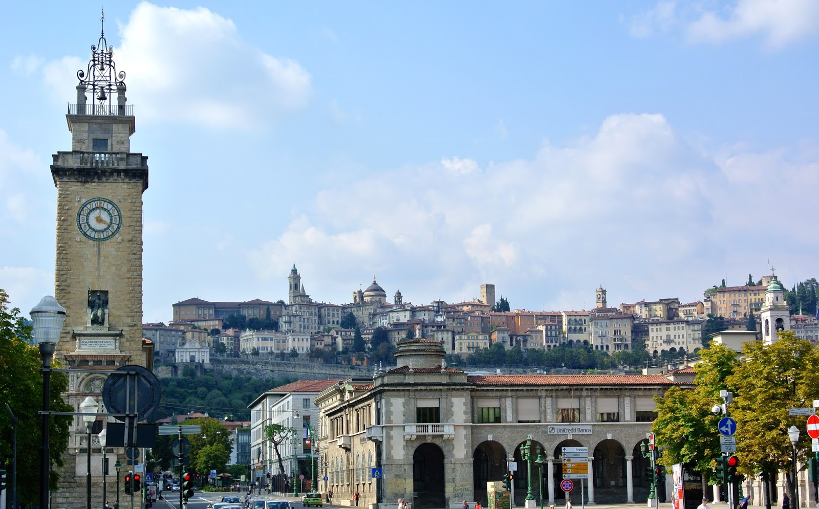 Matka Milanosta jatkui Bergamoon. Bergamoon menee suoria junia Milanosta noin tunnin välein, ja matka kestää vain noin 45 minuuttia. Voi kuinka kaunis kaupunki ja aivan upeita vanhoja rakennuksia. Ihan henkeä salpaavan kaunista, ja wau mitkä maisemat!