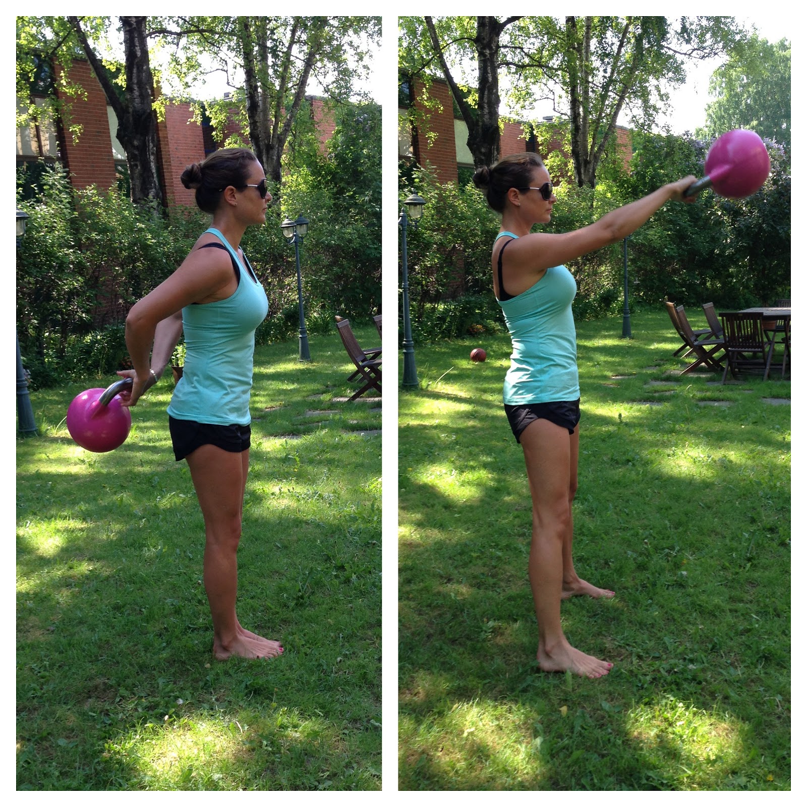 Hyotyliikuntaakin tulee Kesalla tehtya enemman. Kahvakuula kannattaa tulla treenailemaan Munkkaan πŸ˜‰