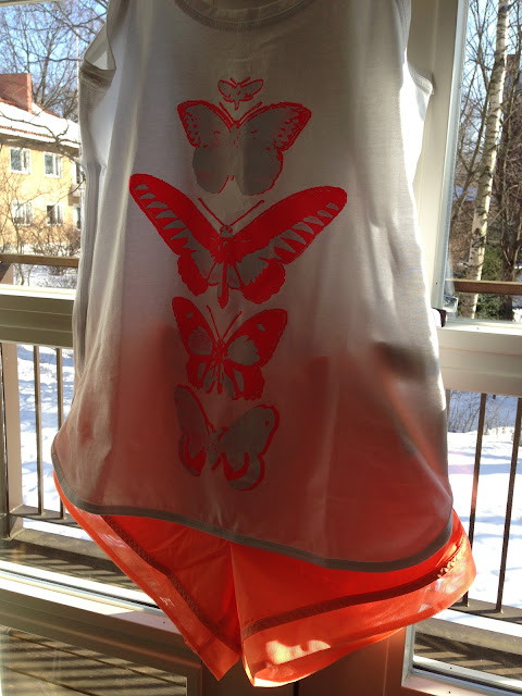 Viikonlopun ruokaostoksia tehdessa, en voinut vastustaa kiusausta kayda urheilupuolella katsomassa kevaan uusia juoksukamoja! Aivan ihania juttuja olikin jo tullut, ja oi mita ihania vareja!! Pinkkia, oranssia, mintunvihreaa…. ihan karkkeja! Mun mukaan lahti nama Stella Mc Cartneyn juoksu-shortsit ja toppi! Ihan viela naissa ei sentaan ulkona juosta, mutta akkia se kevat/kesa sielta tulee… Uudet lenkkaritkin pitaisi loytaa… 🙂