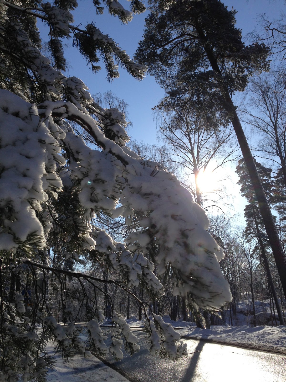 Voiko viikko paremmin alkaa kuin aamulenkilla? Ilma oli ihanan aurinkoinen ja yllattavan lamminkin, vaikka takatalvi yrittikin tehda tuloaan… Onneksi aurinko lammittaa niin eikohan se lumi akkia sula pois. Oli jo niin ihanaa, kun paasi juoksemaan paljaalla asfaltilla.