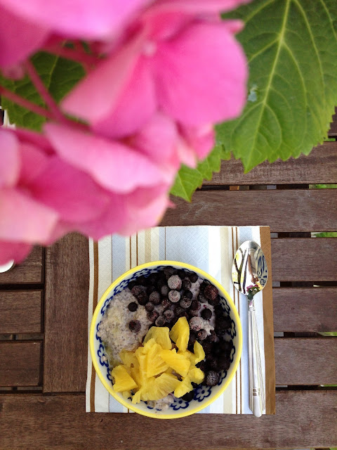 Parin paivan takaista chia/banaanipuddingia, joka maistuu aina yhta hyvalta… talla kertaa pudding maistui ananaksen ja mustikoiden kera 🙂
