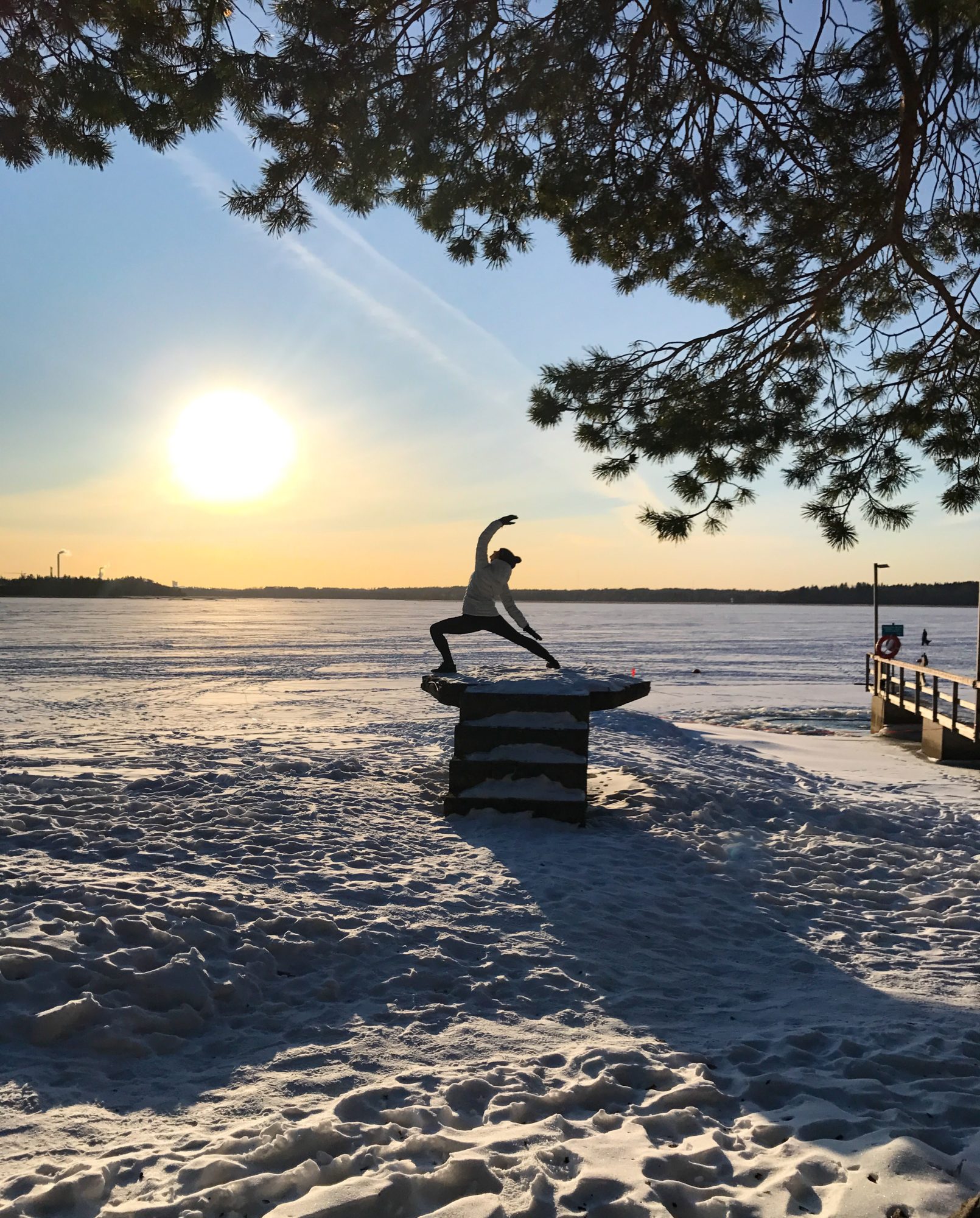Laajalahden ympäristössä kulkevat kesäisin juoksureittini. Koko lahden ympäri kiertämisestä kertyykin mukava semi-pitkälenkki, noin 13 kilometriä. Maasto on vaihtelevaa- asvalttia, polkua, pururataa, soratietä ja pitkospuita. Jos kaipaat vaihtelua juoksulenkillesi, suosittelen tulemaan tänne, vaikka hieman kauempaakin. Kesäisin rannassa voi tietenkin myös uida, ja halutessa vuokrata Twenty Knotsin SUPpailu- tai surffilautoja. Nyt talvella taas jäällä näkee hiihtäjiä, kävelijöitä ja luistelijoita. Oli mukava huomata eilenkin, kuinka ihmiset ovat aina lapsesta vaariin lähteneet liikkeelle.