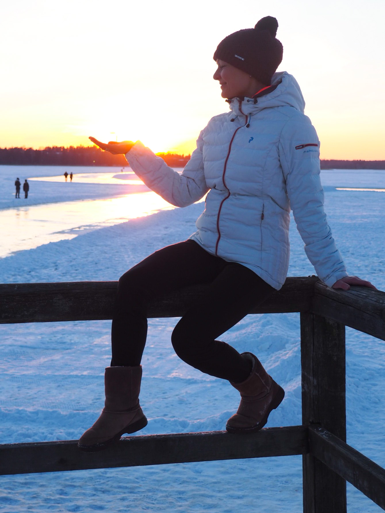 Päivät pitenevät, lumi ja aurinko tuovat valoa. Kevättä kohti ollaan kovaa vauhtia menossa. Perjantaina ystävän kanssa Laajahden jäällä kävellessä oli niin keväinen olo. Pakkasesta huolimatta aurinko lämmitti. Latuja risteili pitkin poikin. Kävelimme jäitä pitkin aina Laajalahdelta Seurasaareen. Pari tuntia meni ystävän kanssa kävellessä ja jutellessa kuin huomaamatta. Auringonlaskiessa palasin vielä jäälle ihailemaan upeaa taivasta.