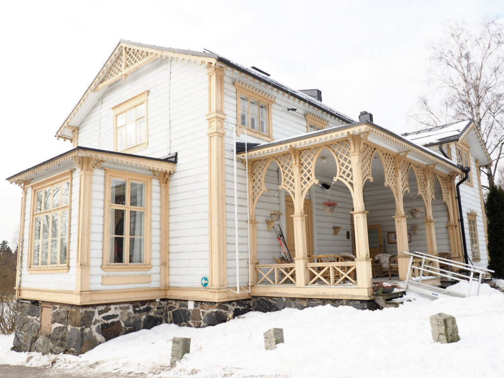 Luistelujen jälkeen vaihdoimme kengät jalkaan ja kävelimme jäätä pitkin Tarvaspään tunnelmalliseen 1850-luvulla rakennettuun kahvilaan. Kahvila Zoceria sijaitsee Akseli Gallen-Kallelan Museon pihapiirissä, kartanorakennus Villa Linuddissa. Akseli Gallen-Kallelan museosäätiön edustajiston puheenjohtajan, Matti Auran, sanoin Tarvaspää kuuluu Suomen kansallisaarteiden listalle. Kahvilasta ei siis ole vain upea näkymä järvelle, vaan juurikin kahvilan ja koko pihapiirin värikäs historia tekee siitä pianomusiikkineen mielenkiintoisen.