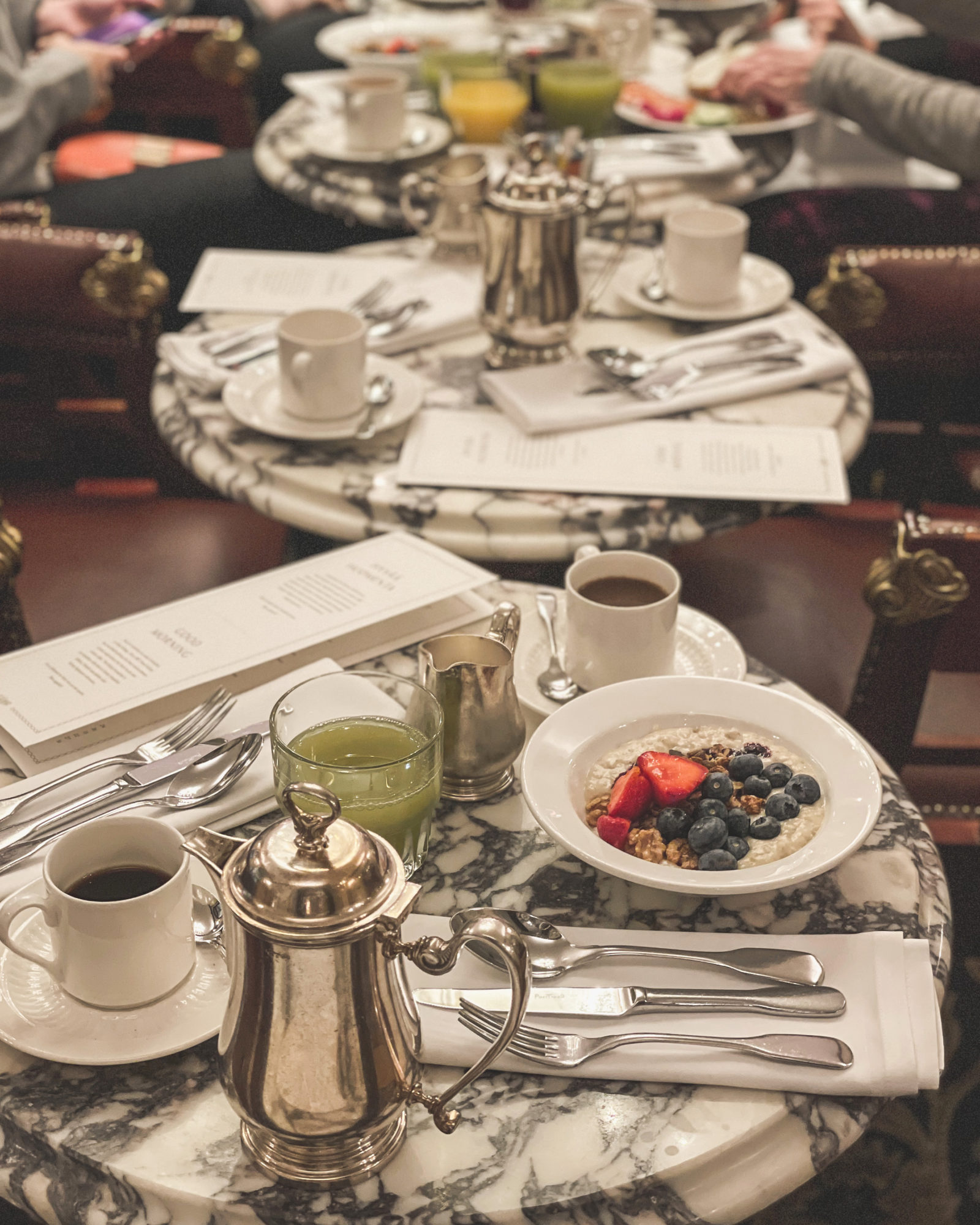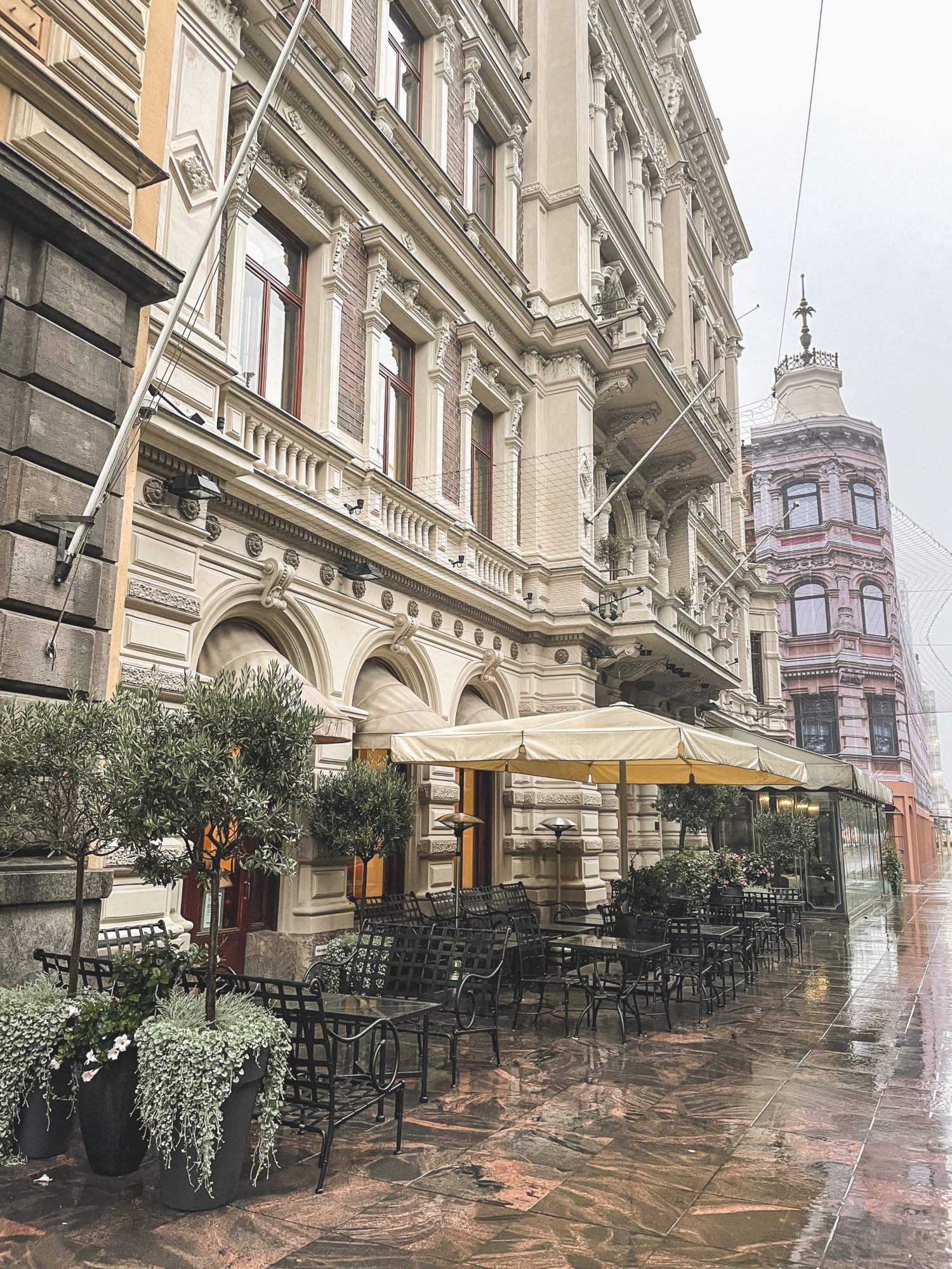 Aamujooga herätteli kehon lisäksi myös näläntunteen. Joogasta olikin mukava suunnata suoraan hotellin aamiaiselle. Hotelleissa rakastan pitkään haudutettua puuroa. Kämpin puuro marjoilla, mustikkahillolla ja talon granolalla on yksi parhaista. Munakas ja pannukakku varmistivat hyvät energiat päivän porrastreeniin. Sade ei haitannut päivän viimeisessäkään treenissä. Itse asiassa pieni vesisade oli mukava ja ilma happirikas. Saimme onneksemme pitää huoneet klo 13 asti ja treenin jälkeen ehti halutessa vaikka uudelleen vaahtokylpyyn!