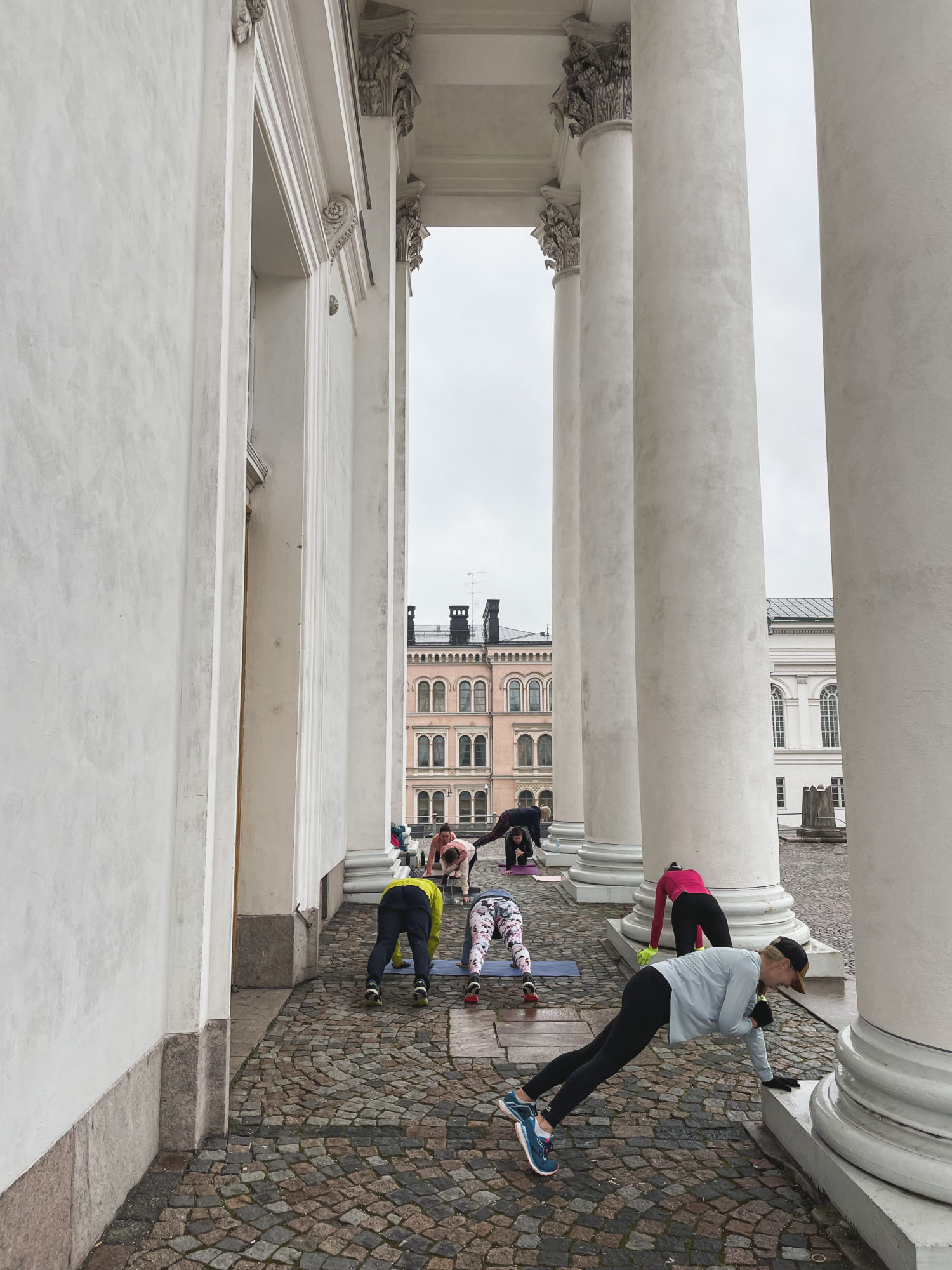 Tänään päivä valkeni ennusteen mukaisesti sateisena. Onneksi oli melko lämmin eikä edes tuullut. Tuomiokirkon katoksen alla oli hyvä herätellä joogaten kehoa uuteen päivään. Lyhytkin jooga/kehoa herättelevät venyttelyt ja avaavat liikkeet, rintakehän avaukset ja selkärangan rullaukset, tekevät hyvää heti aamusta- jo viisikin minuuttia riittää. Esimerkiksi kahvin tippuessa ehtii tehdä muutamat venytykset. Uuden rutiinin kanssa aloittaminen on usein se haastavin hetki, mutta pikku hiljaa, kerta kerran jälkeen sekin helpottuu. Mikä olisi itselle se paras hetki venyttelylle?