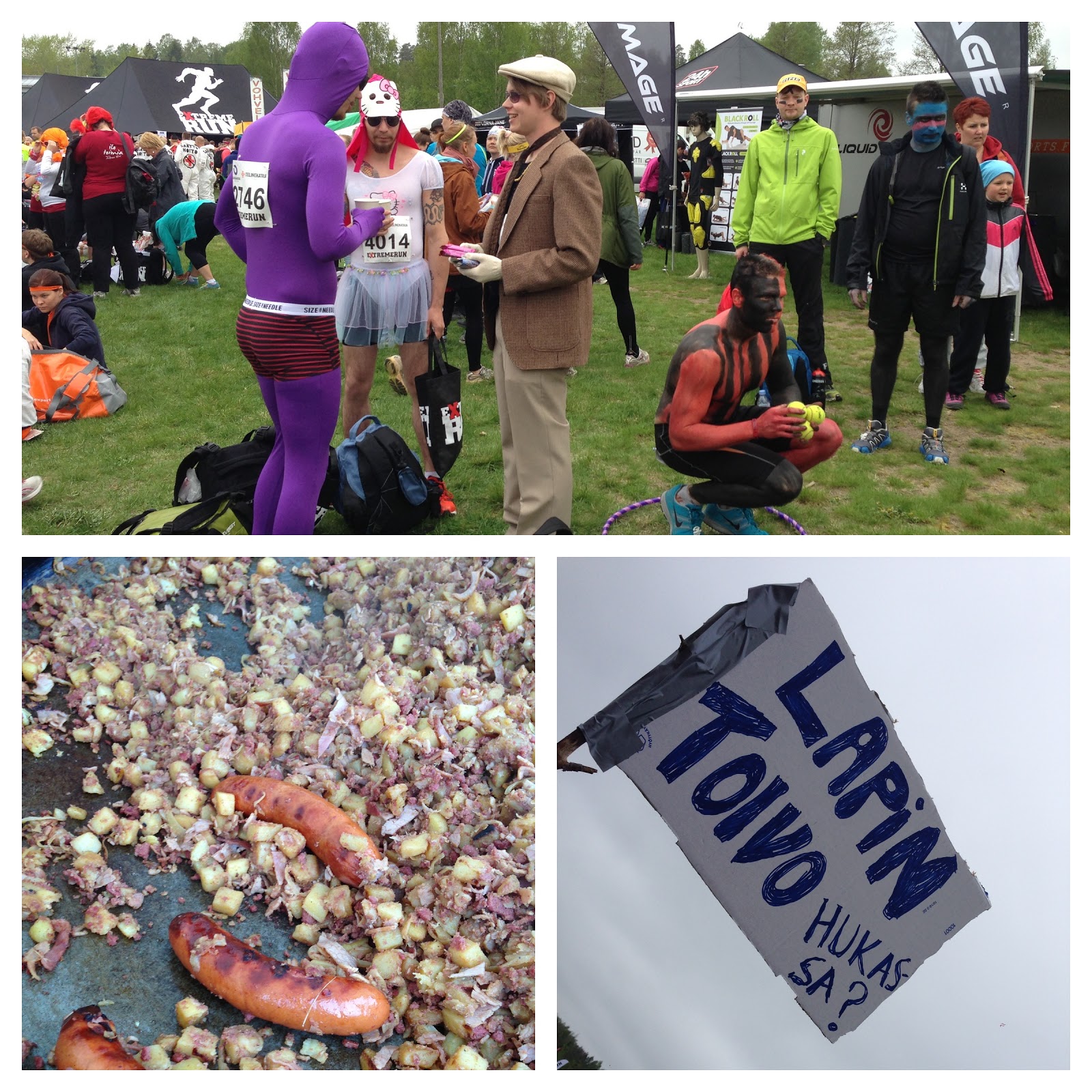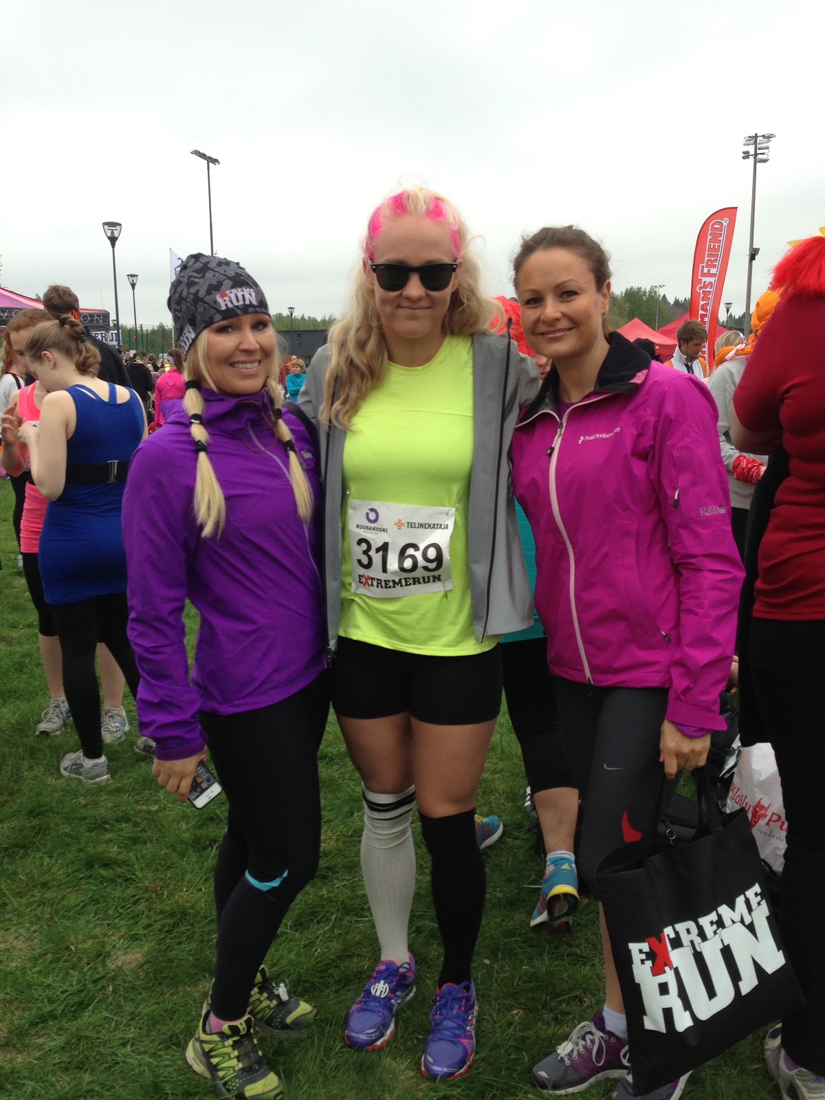 Kiitokset Hannalle ja Sonjalle kivasta paivasta! Oli kiva juosta valilla ihan vain huvikseen ilman mitaan tavoitteita. Mukavassa seurassa matka taittui leppoisasti jutellen, ja aina tarvittaessa annettiin Sonjan kanssa Hannalle pienta “vetoapua” ylamaissa π Hanna veti hienosti koko 18km, vaikka takana olikin vain muutama juoksulenkki. “Huumorilla mennaan ja kaveria ei jateta” olikin paivan motto π Maaliin juostiin kasi kadessa ja meilla todellakin oli hauskaa! Ensi vuonna ollaan ehdottomasti mukana uudelleen. Katsotaan missa asussa mennaan…