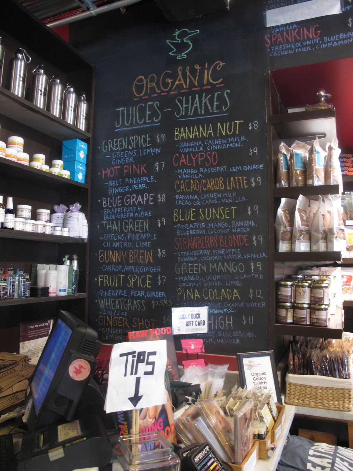 One Lucky Duck on ehdottomasti mun suosikki smoothiebaari Cityssa! Se sijaitsee Meatpacking Districtilla, Chelsea Marketilla. (Toinen take away paikka myos Gramercy Parkissa!) Smoothien ja puristettujen mehujen lisaksi sielta saa myos take awayna erilaisia raakaruokia; salaatteja, lasagnea (niin hyvaa! mun suosikki), puddingeja, kakkuja…