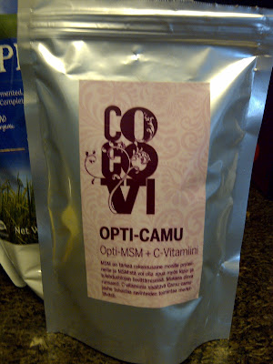 Ma tykkaan just tasta OPTI-CAMU mixista, etta saa kaks karpasta yhdella iskulla. Aika kallista se tosin on… Helsingin Ruohonjuuressa ainakin myydaan, siina Coco Vin baarissa! Kiva ottaa smoothie siita samalla matkaan 🙂 Muuten Msm on aika pahan makuista…