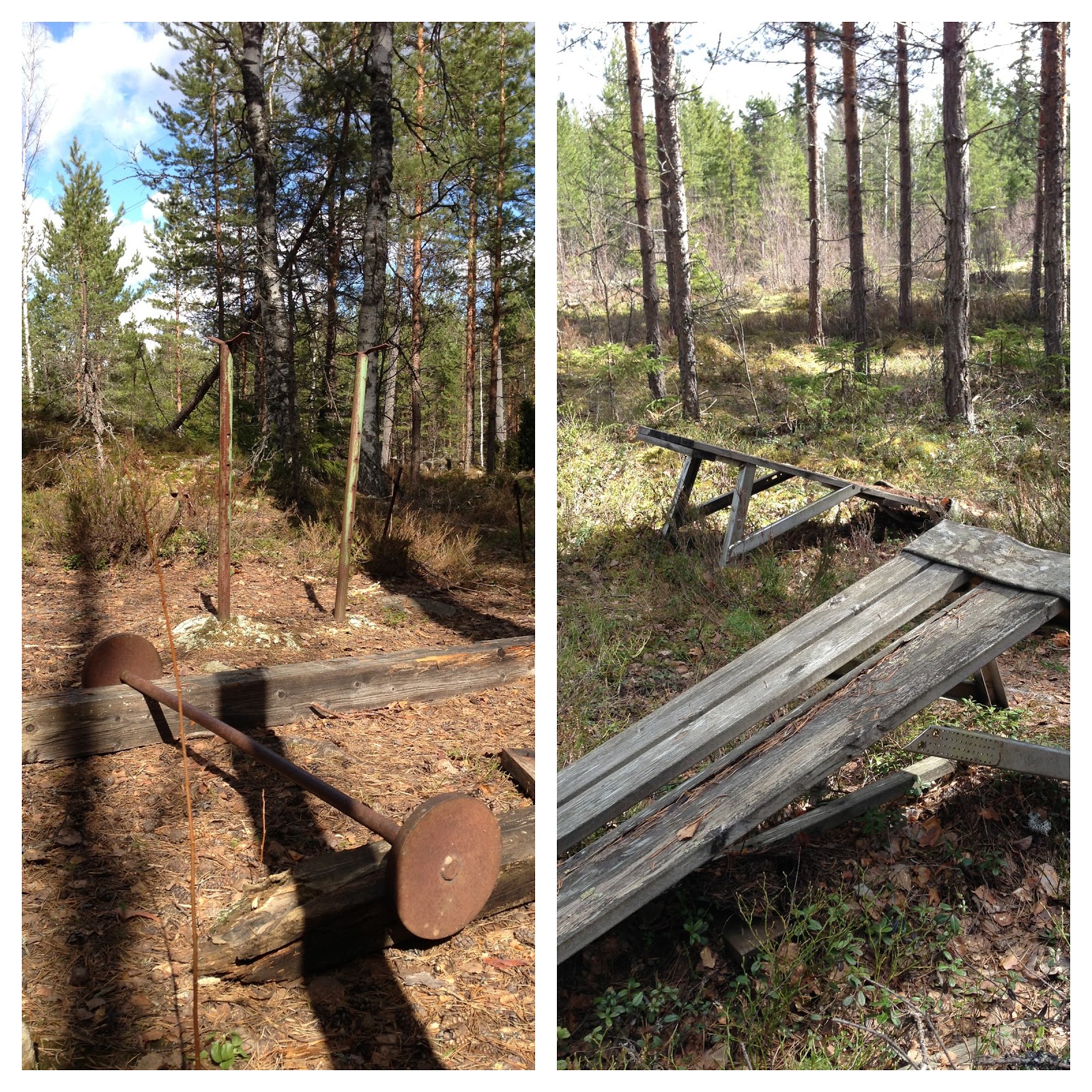 Maasto vaihteli aina metsatiesta lahes olemattomiin polkuihin, mutta hyvin loysin viela Kivimakeenkin; paikkaan keskella metsaa, jossa treenasin kuntopiiria joka torstai lahes 20 vuotta sitten hiihtoteamin kanssa. Vahan ehka kaipaisivat “laitteet” paivitysta, mutta hyvin pystyi viela tangolla tehda kyykkyja. Ja tuskinpa taalla enaa kovinkaan moni treenaa, sen verran kaukana on paikka sivistyksesta… tai tanaan ei ainakaan muita nakynyt.