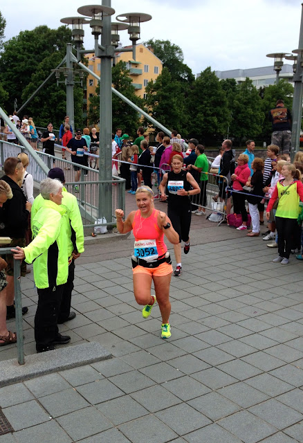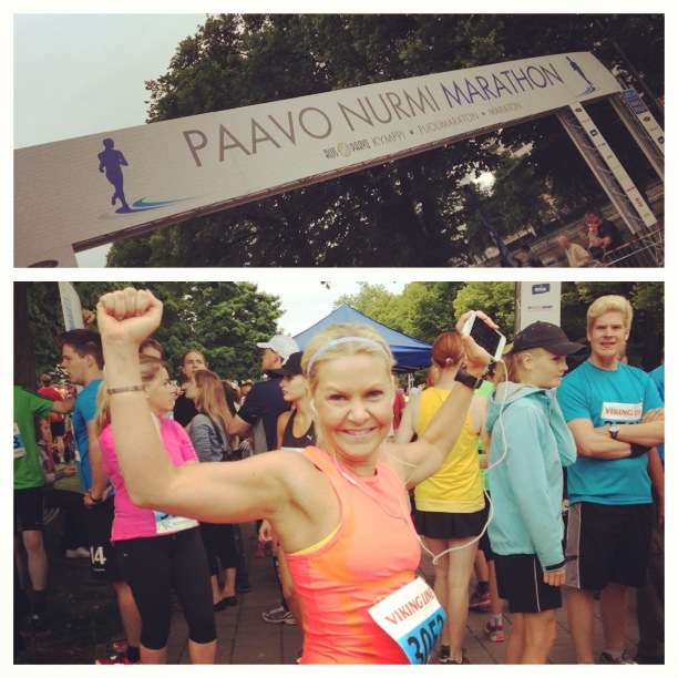 Aamu alkoi aikaisella kahvakuulatreenilla takapihalla, edes pikku sade ei haitannut menoa. Olo oli todella energinen ja innoissani odotin paivaa Turussa. En muista koska olisin lahtenyt juoksutapahtumaan kannustajan roolissa, ja taytyy kylla myontaa, etta teki niin mieli olla itsekin lahtoviivalla numero rinnassa. Nain oli nyt kuitenkin talla kertaa parempi ja toivottavasti parin kolmen viikon juoksulepo saa ihmeita aikaan. Ja oli tietenkin ihan mahtavaa olla kannustamassa ja tsemppaamassa Tanja omaan ennatykseen. Ihan huippua Tanja! Kevyesti matka taittui alle tavoiteajan eli alle sen 2h!