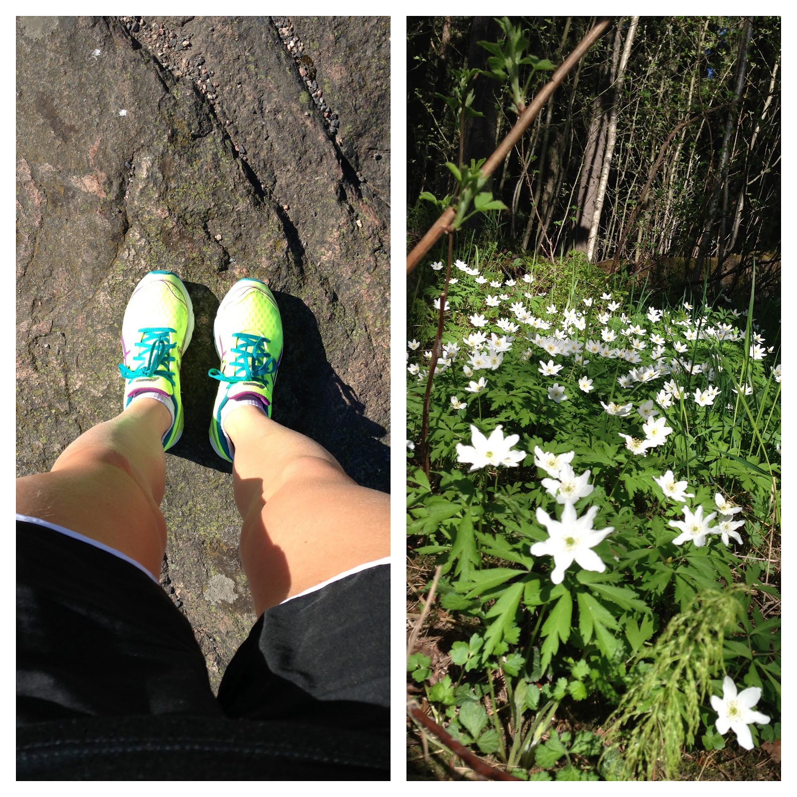 Eihan sita voinut vastustaa lenkkipolun kutsua nain kauniina paivana… Ihan kevyesti juoksentelin HCR:n maastossa, kaunista luontoa fiilistellen ja kuviakin rapsin sielta sun taalta. Lenkki tosin venyi suunniteltua pidemmaksi (reilut 12km), kun en ihan pysynyt kartalla. Jossain vaiheessa eksyin HCR:n reitilta… en muista HCR:lla nahneeni hevosia, tai sitten juoksin niin sumussa… muutama kilometri lisamatkaa, mutta mikas siina oli nain kauniilla saalla juostessa 🙂