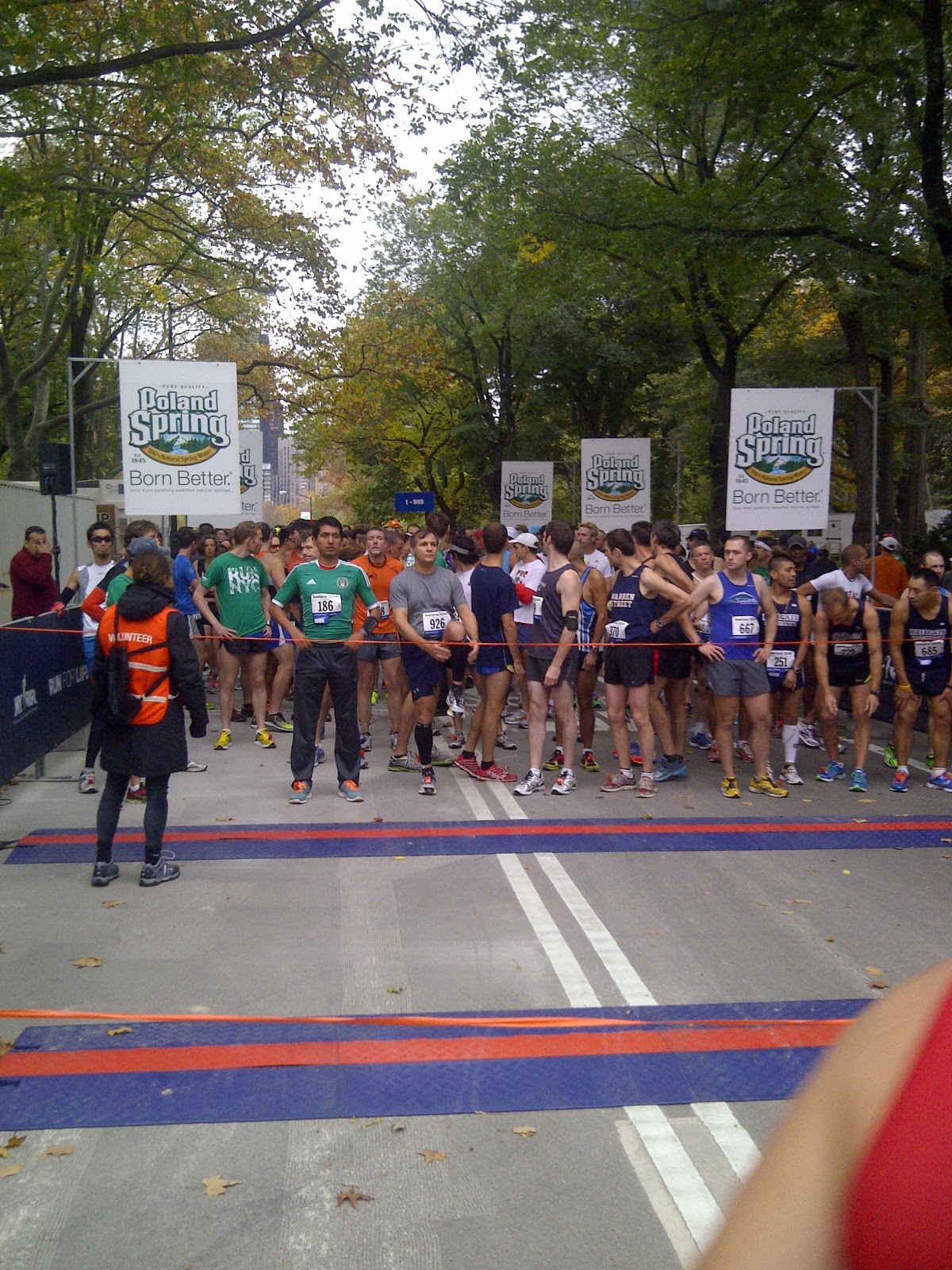 This morning I woke up at 5.30am and checked first internet if today’s run was still on. Hurricane Sandy is approaching and people are getting ready to face it. Run was still on so I did my normal race morning routine! Weather was already quite windy and grey when I left at 7am to Central Park. I got there just perfect time. Just enough time to do my warm up and take all my belongings to baggage storage. These races are always organised so well even there’s thousands of runners. You can pick up your number and chip 3-4 days before the race.