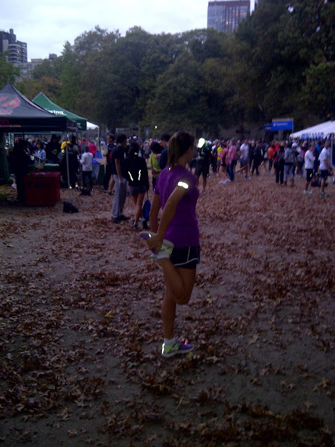 This morning I woke up at 5.30am and checked first internet if today’s run was still on. Hurricane Sandy is approaching and people are getting ready to face it.  Run was still on so I did my normal race morning routine! Weather was already quite windy and grey when I left at 7am to Central Park.  I got there just perfect time. Just enough time to do my warm up and take all my belongings to baggage storage. These races are always organised so well even there’s thousands of runners. You can pick up your number and chip 3-4 days before the race.