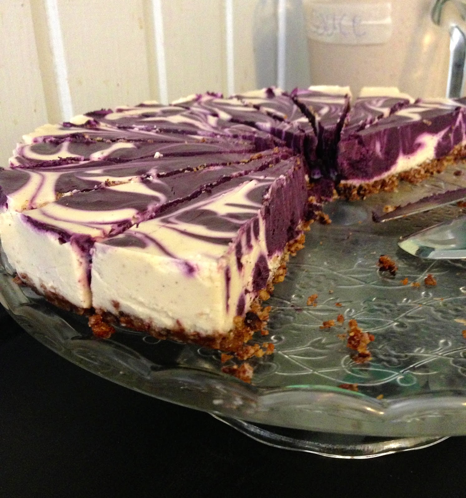 | Raaka mustikkajuustokakkua ostettiin kotiin mukaan |