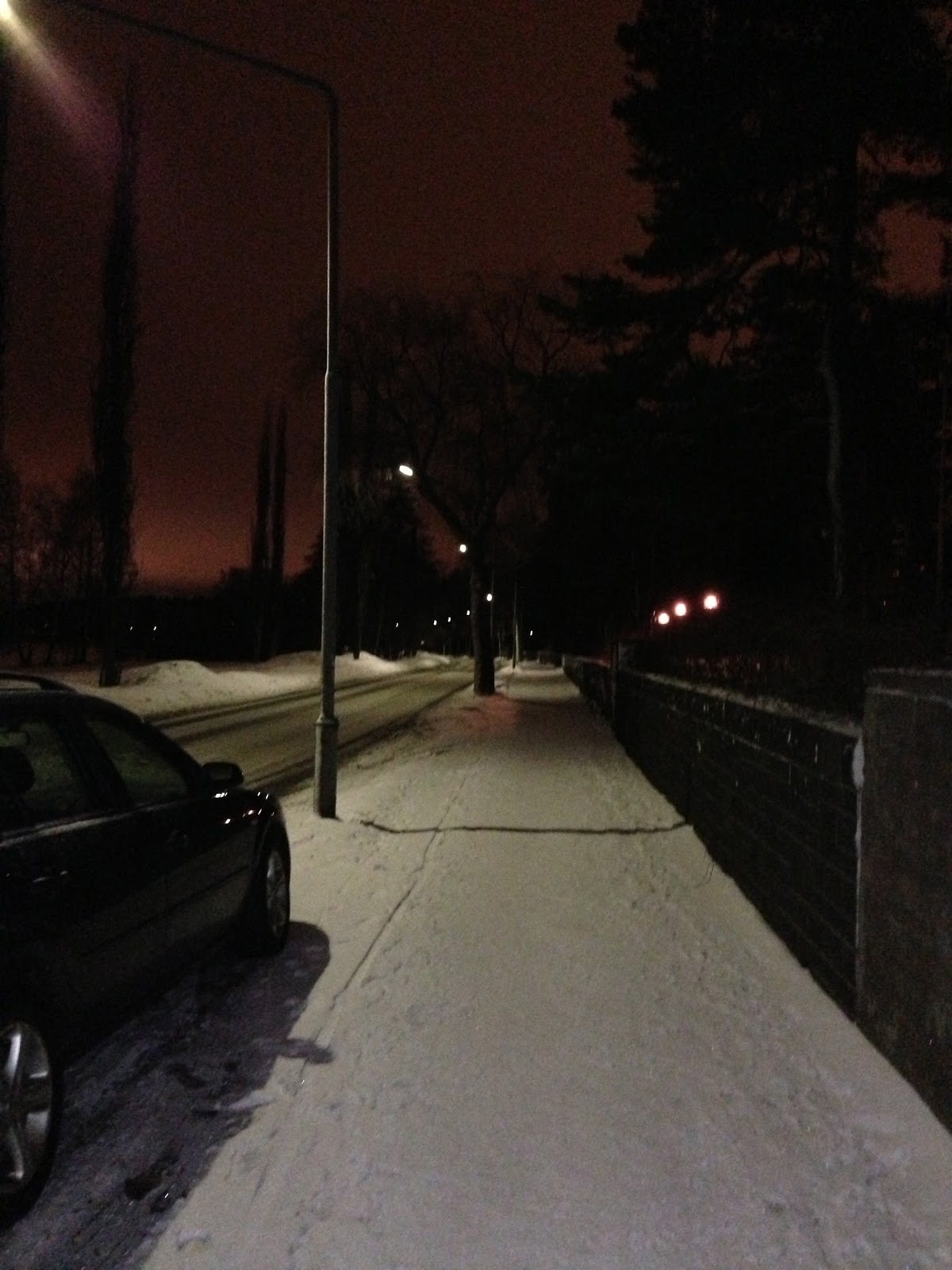Ihan tavallisilla lenkkareilla olin liikenteessa, eika ollut ollenkaan liukas keli. Harkitsin jo nastojen ostoa, mutta talta eraa jaa ainakin valiin. Matkalla bongasin pari luistinrataa, joista toinen lahtee testiin heti tanaan, ja hiihtolatukin siella meni… Harmi kylla, mutta sukset ovat vahan turhan kaukana tahan hataan!
