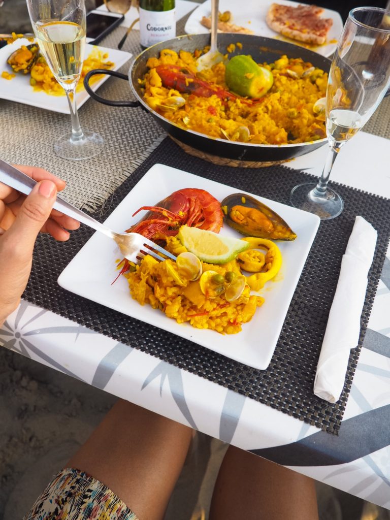 Iltaisin päivän aktiviteettien jälkeen kuitenkin huomaa, että mieli tekee jotain suolaista. Useimmiten kokkaan iltaruuankin itse, mutta toisinaan lähdemme keskustaan tai läheiseen Havana- rantaravintolaan. Seafood paella ja grillattu kala ovat suosikkejani. Superhyvä ruoka rantabaariksi ja siellä on netti! Muuten lomalla tekee muutenkin hyvää olla ilman wifiä.
