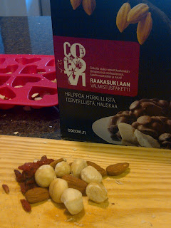 In my cupboards I had a Coco Vi’s Raw Chocolate kit! I bought it already in September, from my last visit in Finland. Now its perfect time to make some chocolate… for xmas parties example!