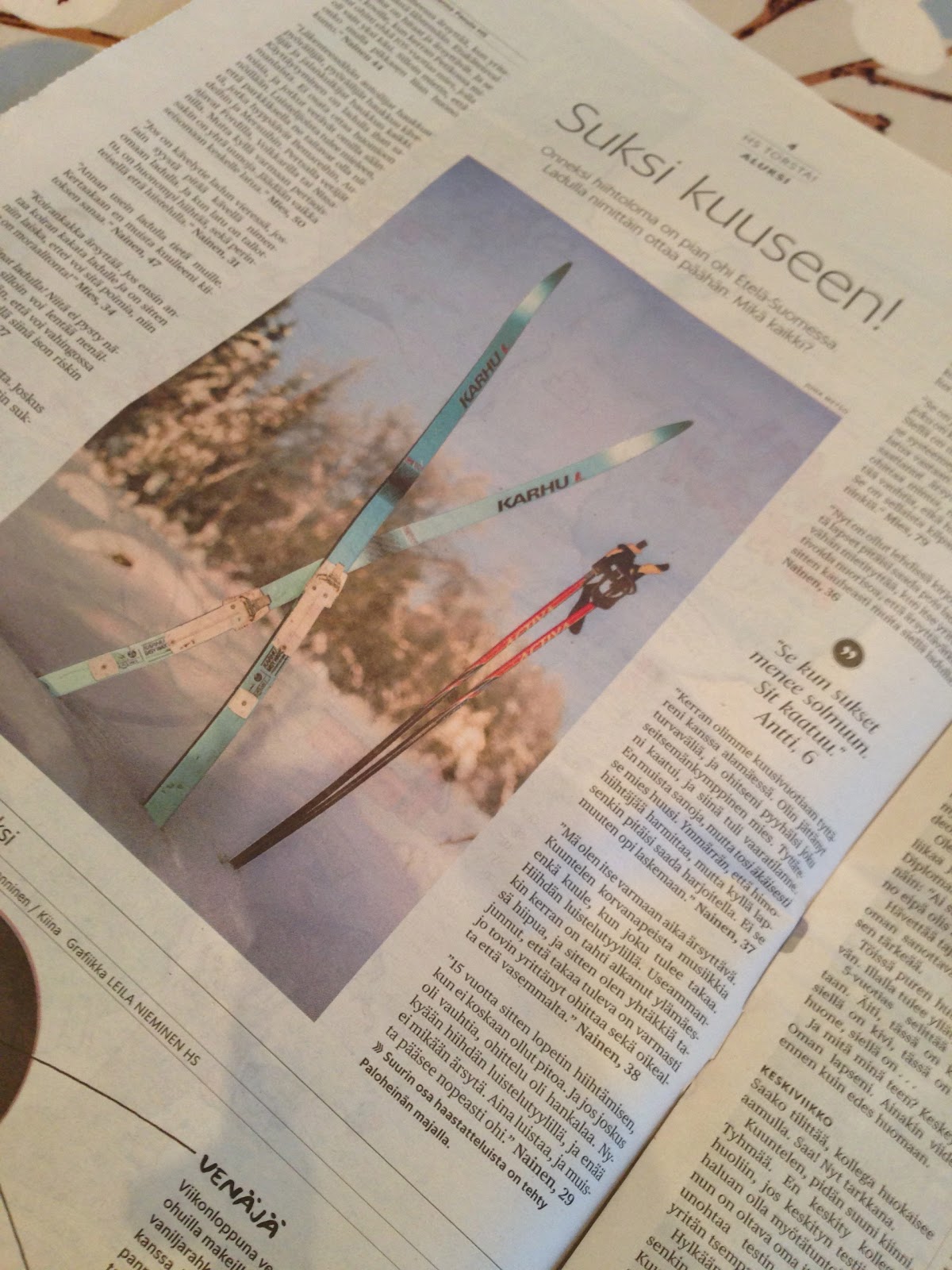 Sitten ensimmainen aamu Helsingissa, ja Helsingin sanomista voi lukea “Onneksi hiihtoloma on pian ohi Etela-Suomessa. Ladulla nimittain ottaa paahan. Mika kaikki?”.
