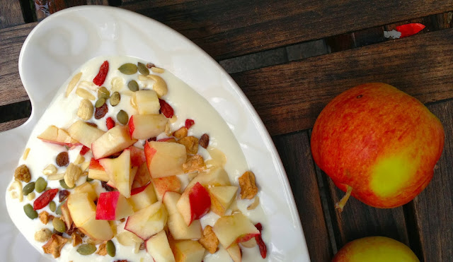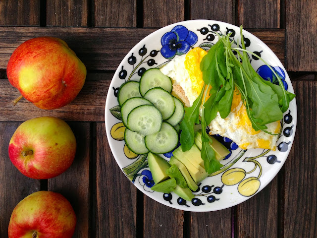 Erilainen aamu. Pitkästä aikaa ei ollut kiire minnekään ja sai rauhassa lötkötellä vanhempien luona. Maustamatonta soijajugurttia, Renee Voltairen trailmixiä, kurkkua, avocadoa, kananmunaa, kauraleipää ja rucolaa. Ja kuppi kahvia! Ihana rauhallinen aamu 🙂