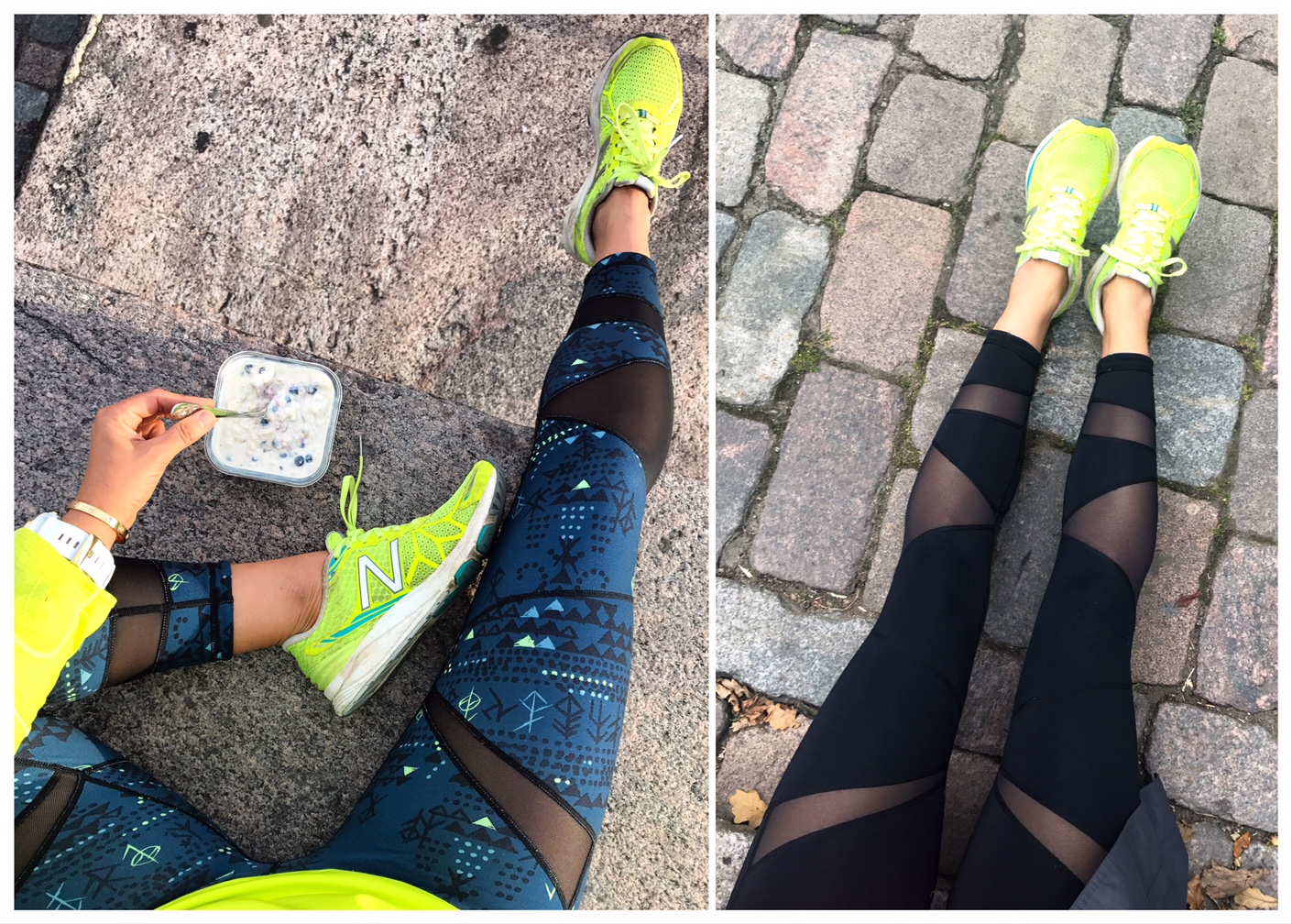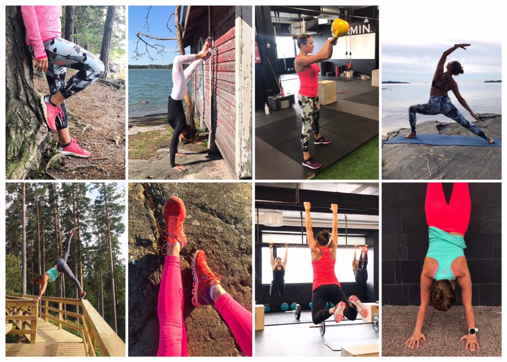 Periaatteessa samoilla trikoilla voi harrastaa lajia kuin lajia, ja välillä juoksen tai vedän lihaskuntotreenit joogaan suunnitelluissa joogatrikoissa. Juoksutrikoilla taas harvemmin joogaan, sillä joogatessa haluan, että trikoot ovat mahdollisimman ohuet- mielellään, niin ettei niiden olemassa oloa jalassa edes tunne.