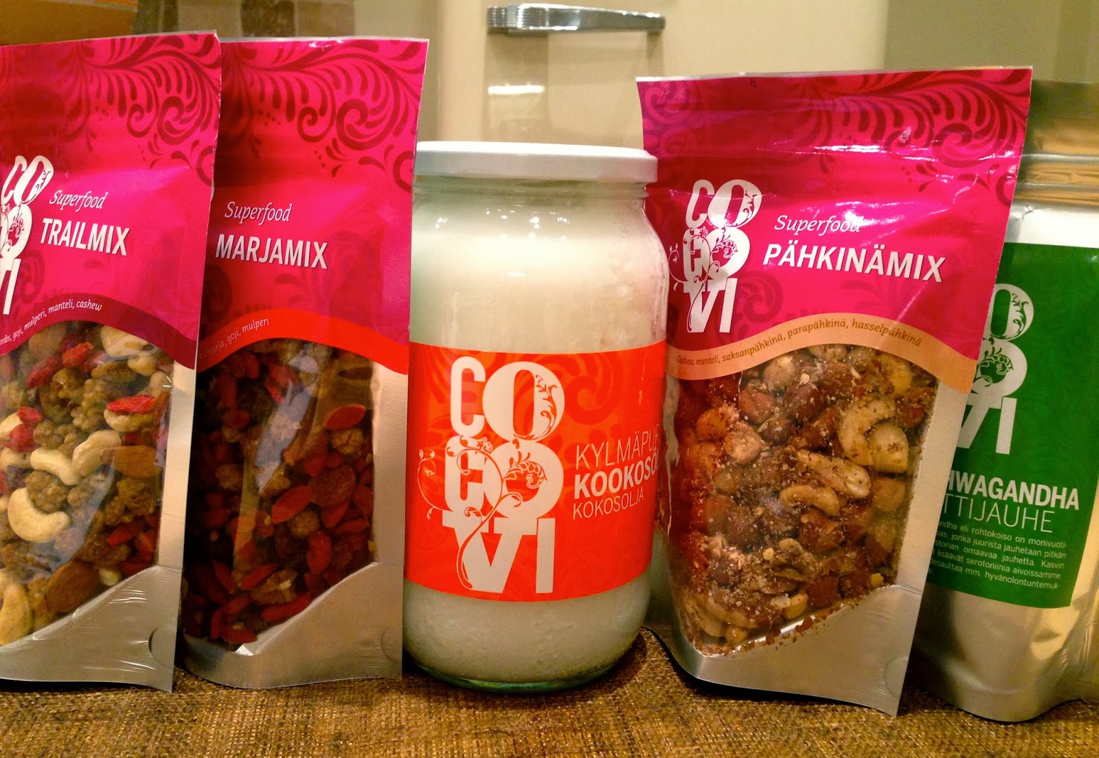 Oletko jo muistanut rekisteröityä blogin julkiseksi lukijaksi ( esim google-tilin, bloglovinin tai blogilistan kautta) ? Sillä nyt sinulla on mahdollisuus voittaa tämä Coco Vin superfoodsetti omaksesi! Kookosöljyä, Ashwagandhaa, marja,- pähkinä ja trailmixiä! Nami nami 🙂
