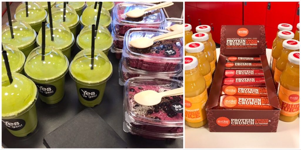 Treenin jälkeen aamupalaa- vihersmoothieta ja tuorepuuroa. Evokelta vielä mehut ja patukat mukaan. Näin kovan treenin jälkeen en heti ole nälkäinen ja tuorepuuron otinkin kotiin mukaan. Paljon nestettä- kookosvettä ja veden joukkoon ripaus suolaa. Mukava aloitus päivälle ja nyt töihin- liikuttamaan asiakkaita 🙂