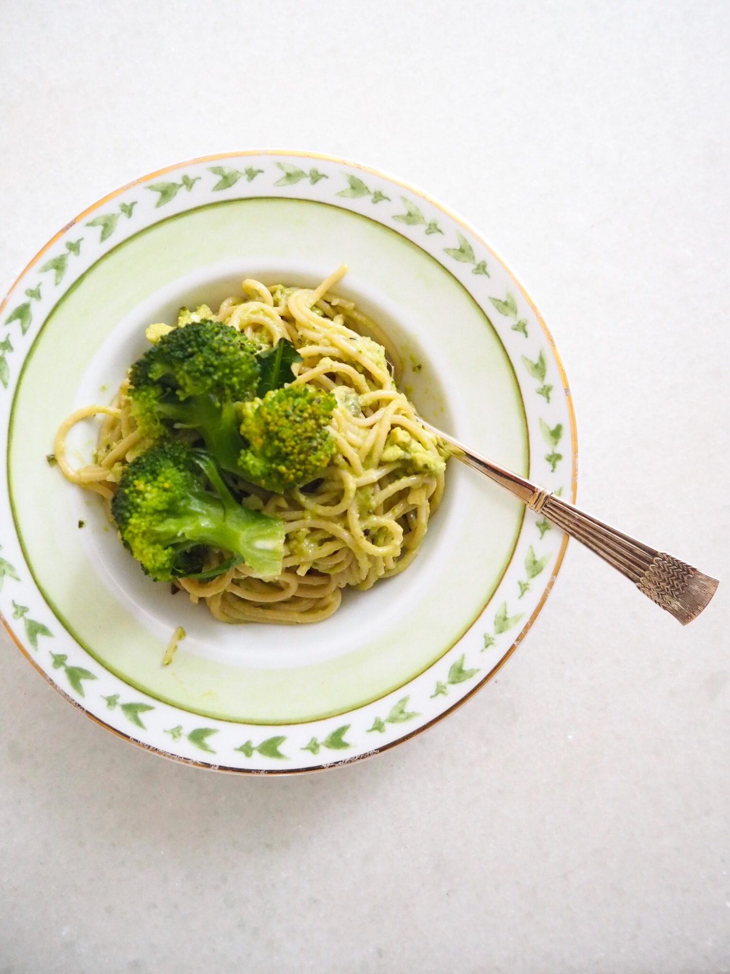 … tein pitkästä aikaa avocadopastaa- omalla twistillä sen mukaan, mitä kaapista löytyi. Keitä spaghetti ja höyrytä parsakaali. Lisää keitetyn ja valutetun spaghetin joukkoon kaikki muut ainekset, todella helppoa kokkausta. Enjoy!