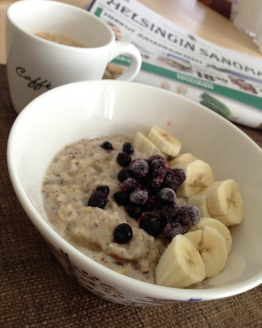 Tallaisia ajatuksia nousi tanaan mieleen. Laitetaan kevennykseksi viela aamupuuron reseptia 🙂