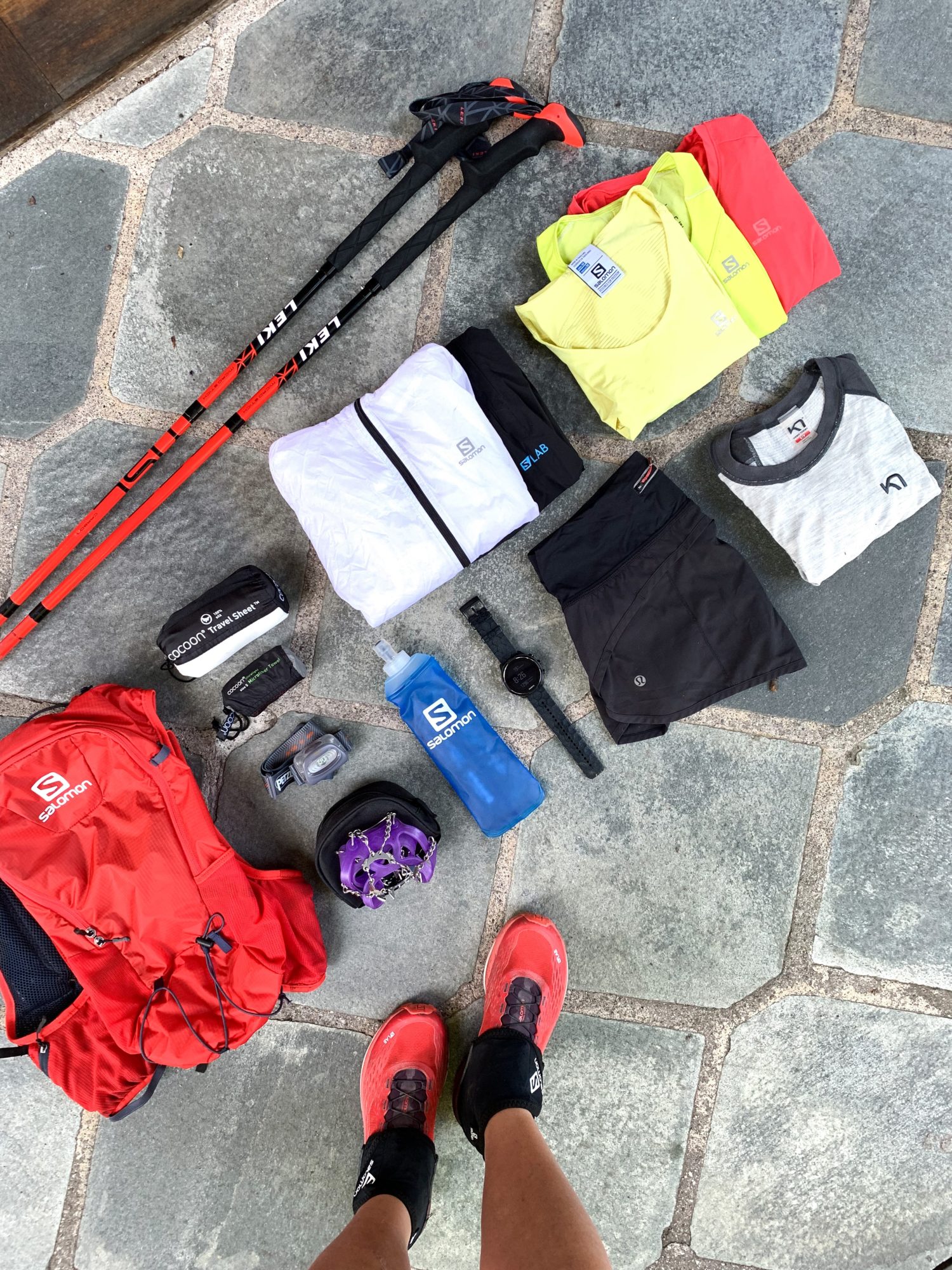 Vaatteissa ja tossuissa luotan Salomonin laatuun ja teknisiin ominaisuuksiin, siksi vaatteiden pakkaaminen olikin helppoa. Mukaan on kuitenkin otettava myös lisävarusteita kuten mm. retkipyyhe, makuuliner ja jääraudat (emme ole menossa jäätikölle, mutta aikaisilla aamustarteilla lumiset polut voivat yön jäljiltä olla jäisiä). En ole vaellusexpertti, mutta onneksi saimme Alppimentoreilta heti ensimmäisellä tapaamisella kattavan listan tarvittavista varusteista. Kannamme kaiken itse eli mitä kevyempään ja kompaktimpaan saa tavarat reppuun pakattua sen parempi.