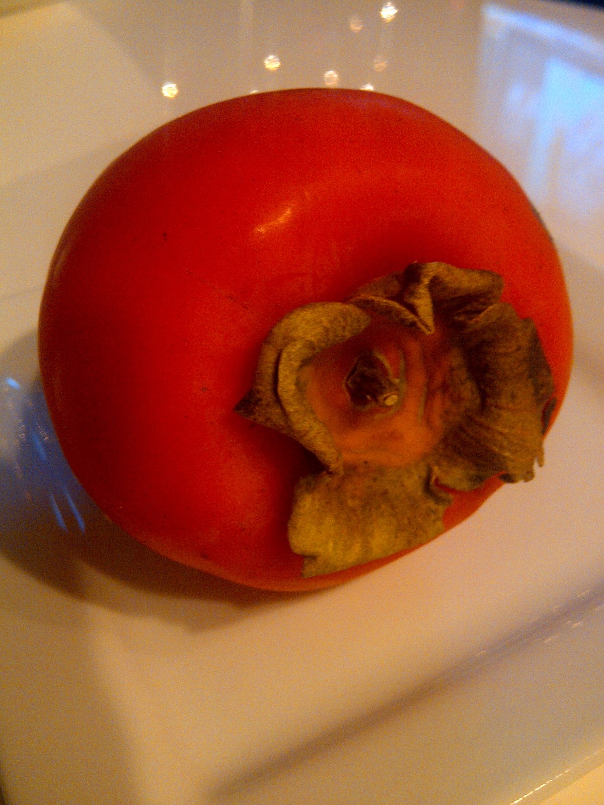 Persimmon on oranssi, tomaatin nakoinen hedelma. Maultaan se on kypsana hieman paarynan ja persikan makuinen… ja aika makea. Persimmon on parhaimmillaan syksylla, eli nyt on hyva aika syoda persimmoneja. Persimmonissa on paljon C, A ja joitakin B ryhman-vitamiineja, ja jonkun verran myos E ja K- vitamiinia.