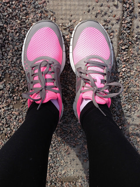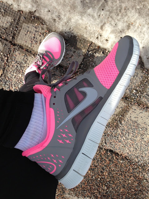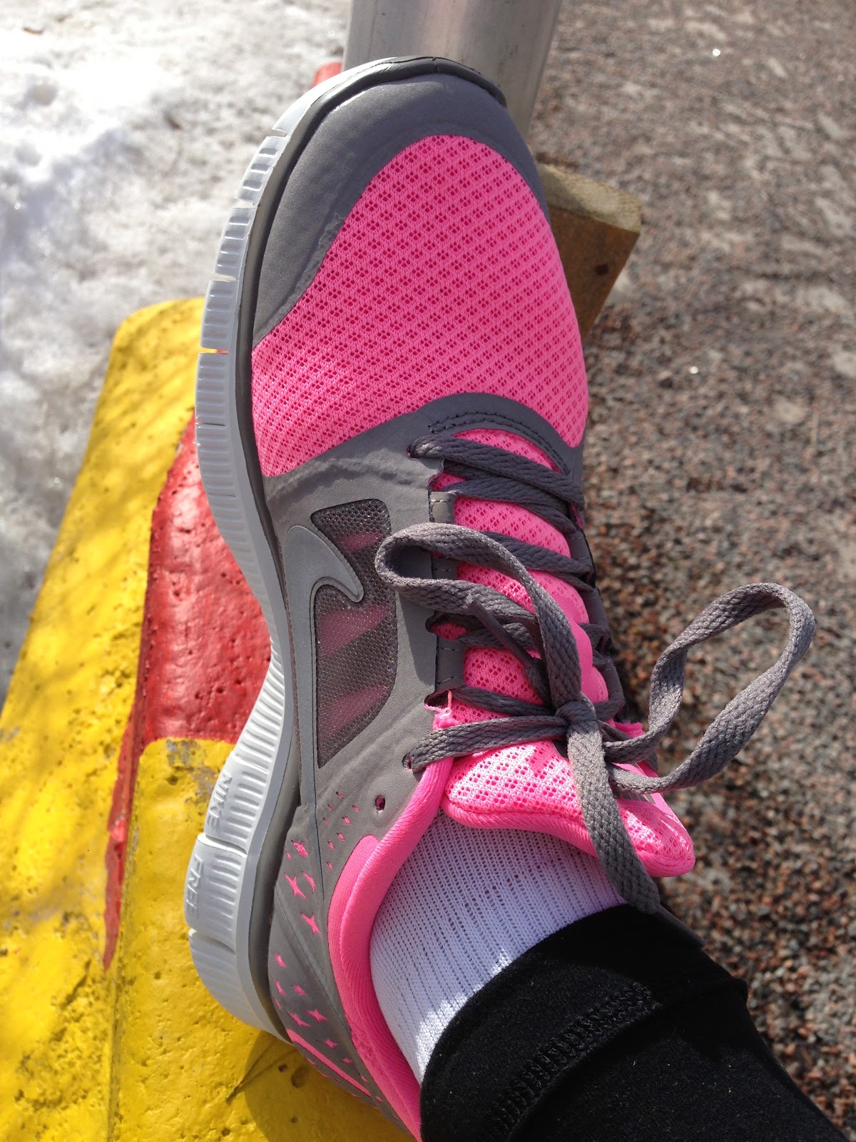 Eilen, viela endorfiinien huumassa, loysin sen taydellisen lenkkariparin… ja viela pinkkeina ๐Ÿ™‚ . En tieda miksi, mutta aikaisemmin nama Niken free tossut eivat ole olleet hyvat mun jalalle. Nyt kenka kuitenkin istui jalkaan taydellisesti! En ole viela varma kaytanko naita juoksussa vai ihan vain “parempina” tossuina kavelylenkeilla. En haluaisi, etta nama ovat viikon paasta ihan mutaiset… Eilen tossut paasivat heti testikayttoon paivan “palaveriin”. Hyvin toimii, ja koko on just perfect ๐Ÿ™‚